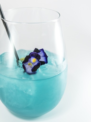ストローを添える。好みに応じて食用花を飾る。
