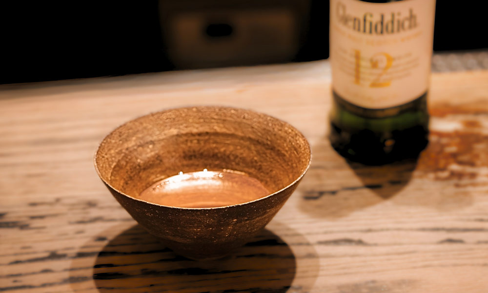 『グレンフィディック12年』の原酒にヨーロピアンオークのオロロソ・シェリー樽熟成原酒も含まれることから、仕上げにオロロソと香ばしい醤油のフレーバーを合わせたスプレーをひと吹き。樽由来の熟成感と醤油のロースト香が重なり、奥行きをもたらす。