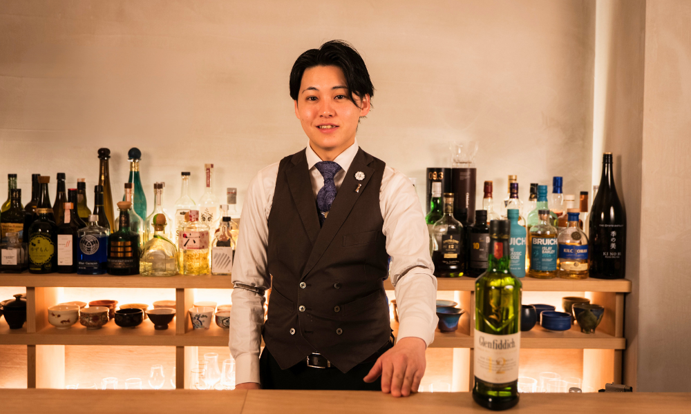 カウンターに立つオーナーバーテンダーの宮之上哲太さんは、29歳という若さ。日々、多数のウイスキーを扱うなかでも、『グレンフィディック12年』の懐の深さに魅力を感じているという。