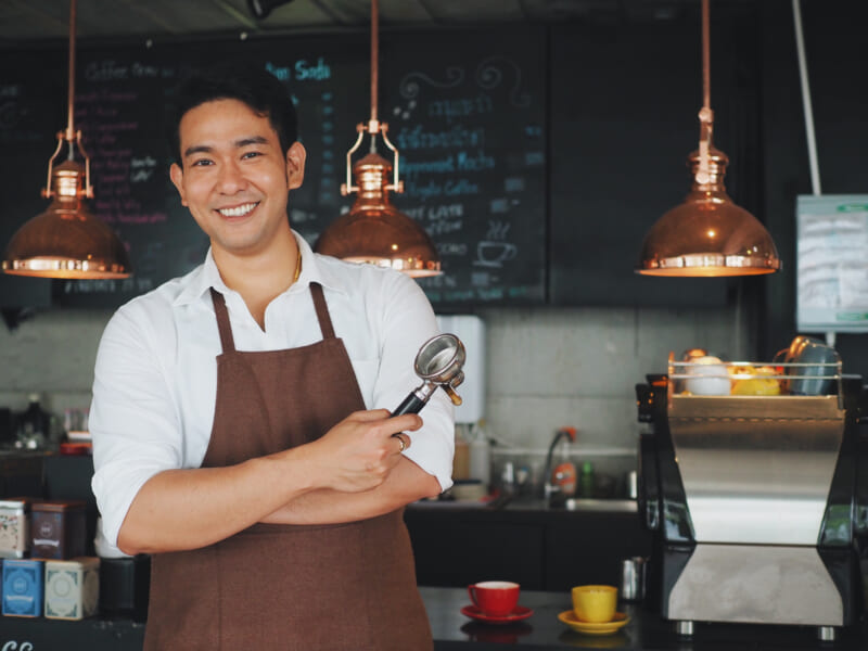 Smart,Asian,Barista,Man,Making,Coffee,In,Coffee,Shop.